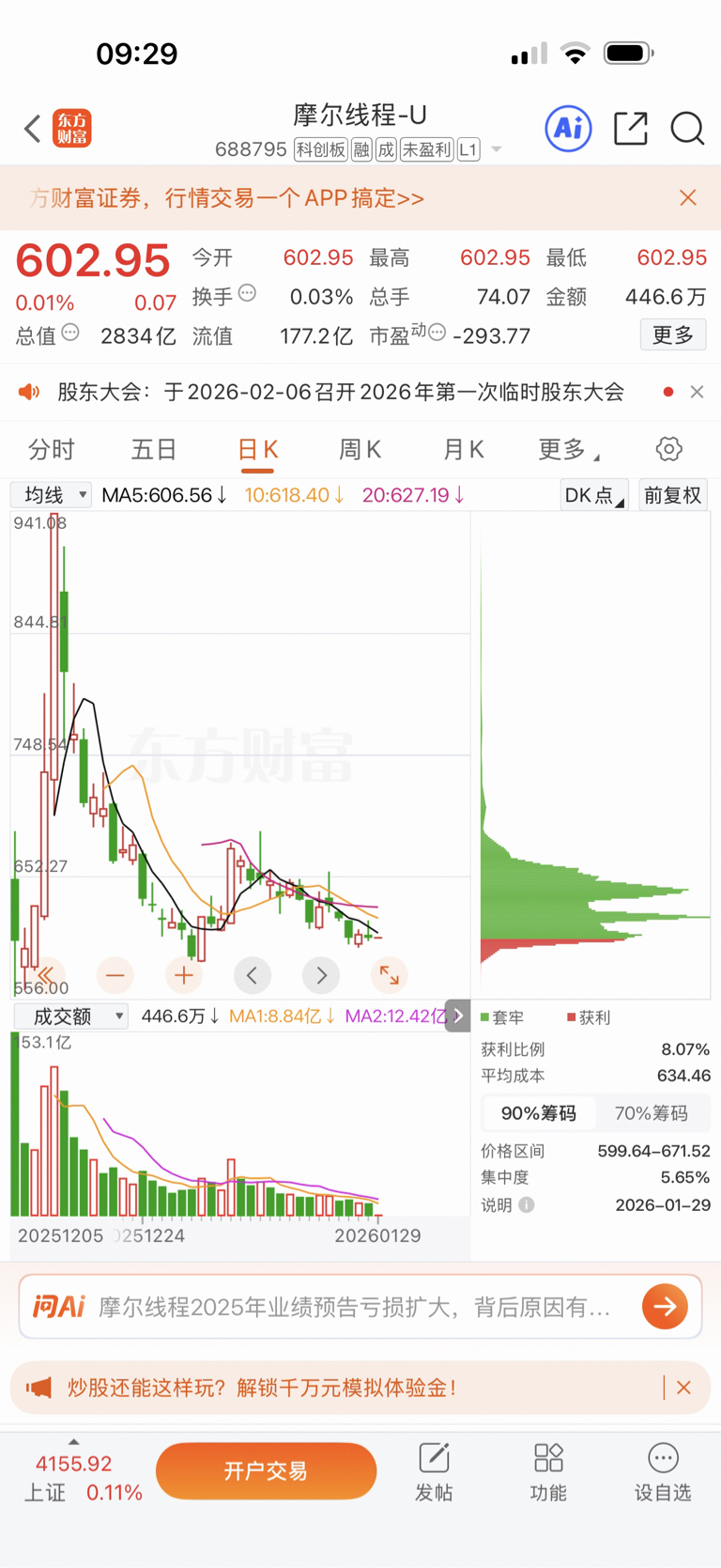 当初25抛了晓程科技,800全仓买入摩尔线程,到如今,唉………