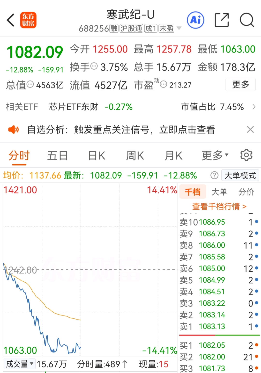但令人意外的是寒武纪的暴跌,据《每日经济新闻》记者以投资者身份致电寒武纪反馈的信息“这个(股价波动原因)我们不太清楚,首先就是市场上很多的传闻,这肯定都是假的。然后二级市场资金、情绪的波动还是比较多的,大家理性对待。”