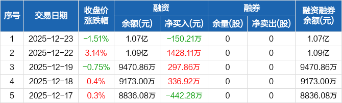 百奥赛图:融资净偿还150.21万元,融资余额1.07亿元(12-23)