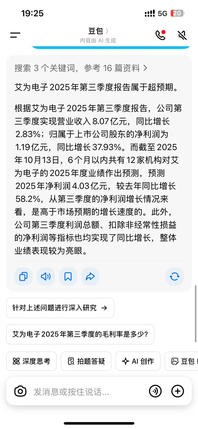 $艾为电子(SH688798)$ 问了豆包,说是超预期