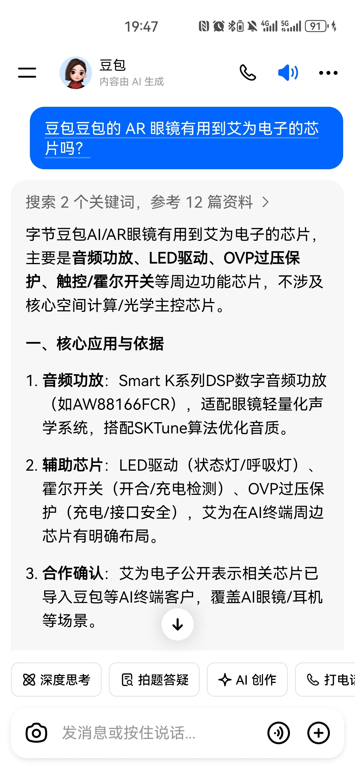 $艾为电子(SH688798)$ 豆包都知道自己的AR眼镜用了艾为大量周边外设芯片,董秘自己捅自己啥意思?!