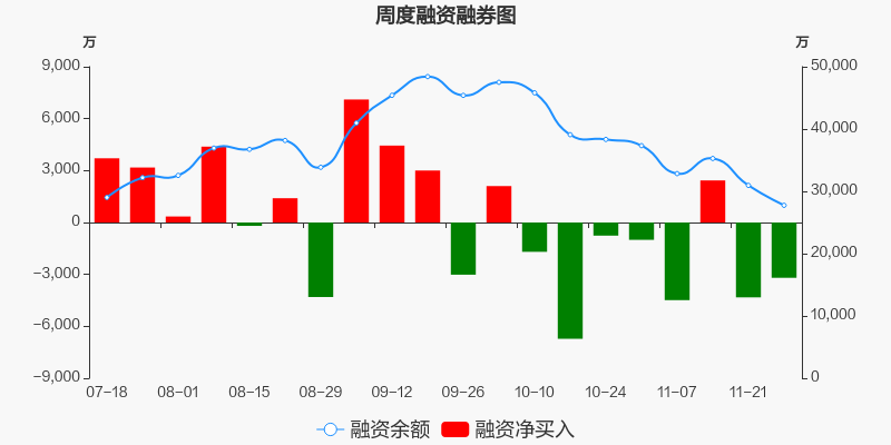 华纳药厂本周(2025/11/24-2025/11/28)累计涨幅达6.57%,截至11月28日最新股价报收48.37元。从增量上来看,11月24日至11月28日融资买入交易规模9598.04万元,融资偿还规模1.28亿元,期内融资净偿还3194.84万元。从存量上来看,截止11月30日,华纳药厂融资融券余额2.78亿元,其中融资余额规模2.78亿元,融券余额规模0元。