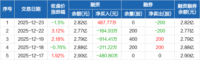 华纳药厂:融资净买入487.77万元,融资余额2.82亿元(12-23)