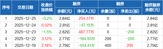 华纳药厂:融资净买入254.37万元,融资余额2.84亿元(12-25)