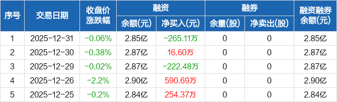 华纳药厂:融资净偿还265.11万元,融资余额2.85亿元(12-31)