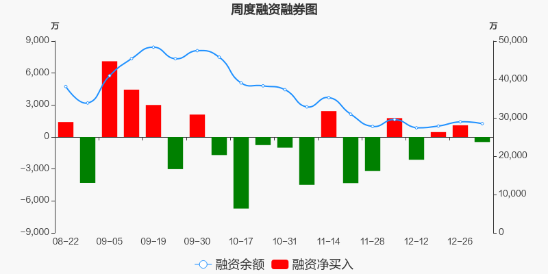 华纳药厂本周(2025/12/29-2025/12/31)累计跌幅达0.46%,截至12月31日最新股价报收47.70元。从增量上来看,12月29日至12月31日融资买入交易规模1581.07万元,融资偿还规模2052.06万元,期内融资净偿还470.99万元。从存量上来看,截止1月4日,华纳药厂融资融券余额2.85亿元,其中融资余额规模2.85亿元,融券余额规模0元。