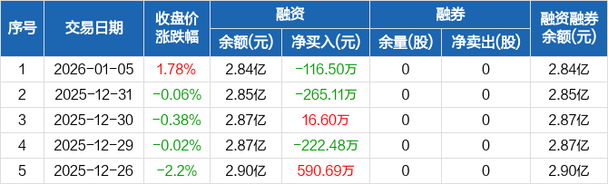 华纳药厂:融资净偿还116.5万元,融资余额2.84亿元(01-05)