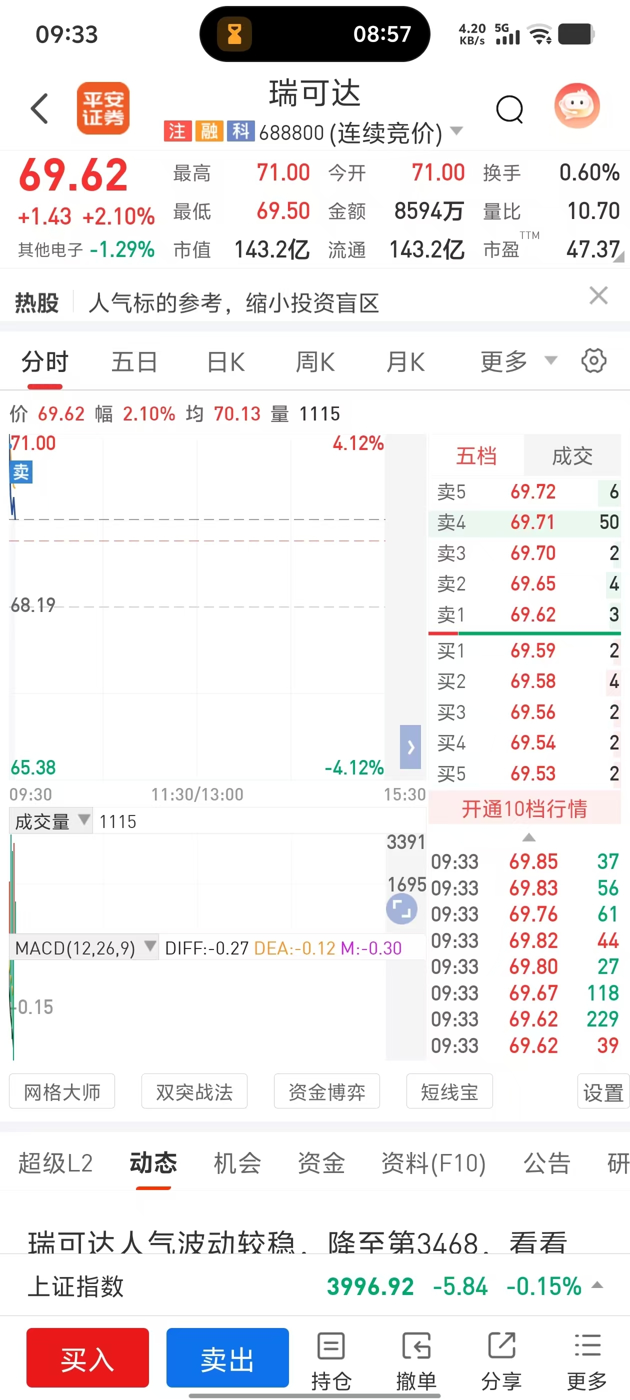 $瑞可达(SH688800)$ 开盘价就卖掉2000股,等下来再买回来