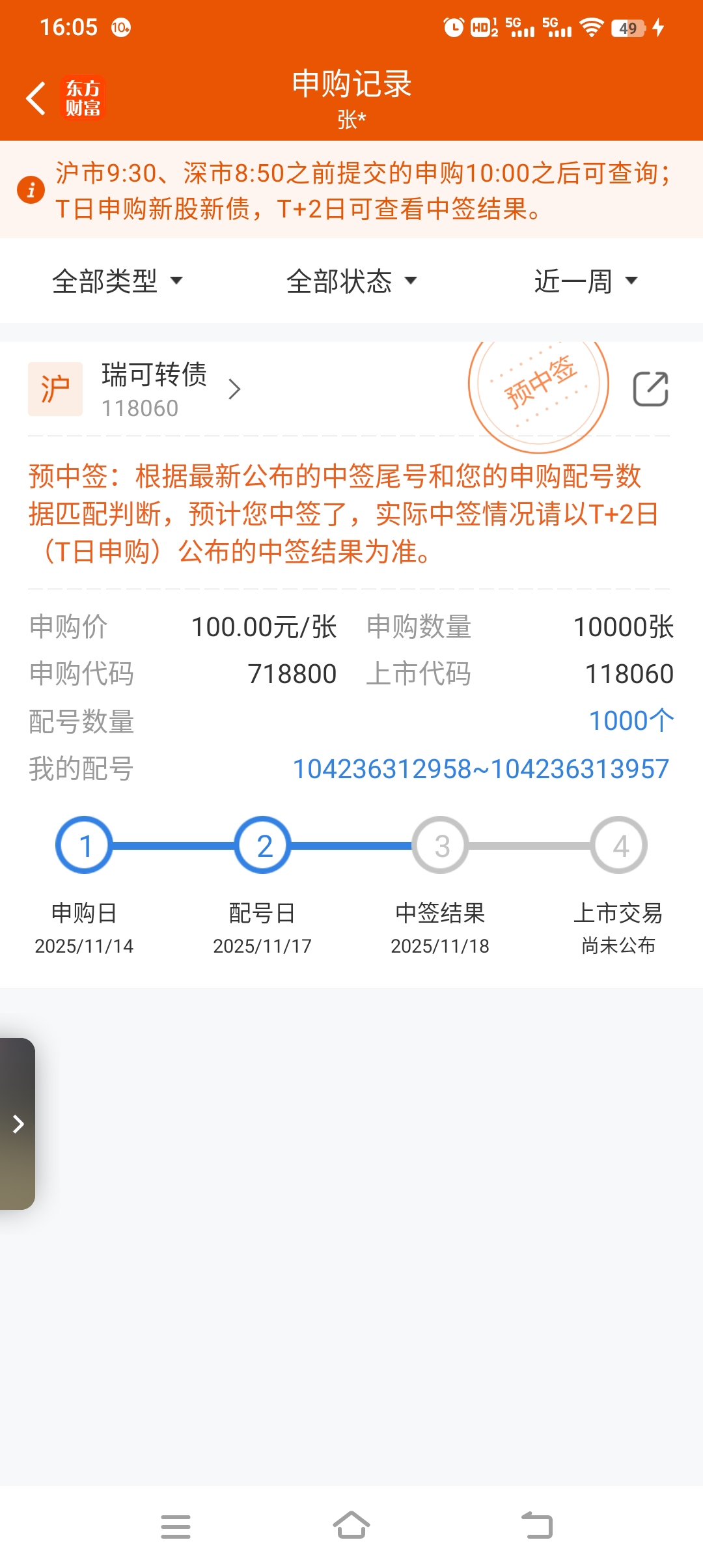 好久没中签了