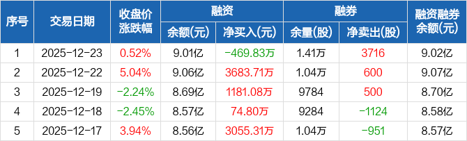 瑞可达:融资净偿还469.83万元,融资余额9.01亿元(12-23)