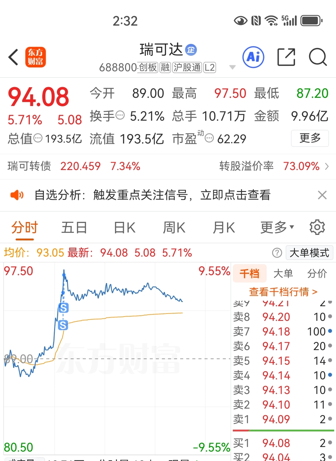 $瑞可达(SH688800)$ 高点走了一部分,下来再加进去,跟着主力一起做波段。