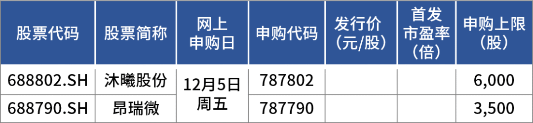 据目前安排,若无变化,下周(12月1日至5日)有2只新股可申购,均为科创板新股。