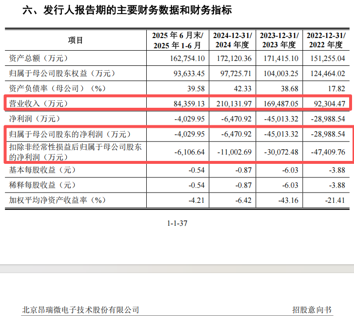 2022年至2024年及2025年上半年,昂瑞微的营业收入分别为9.23亿元、16.95亿元、21.01亿元及8.44亿元。