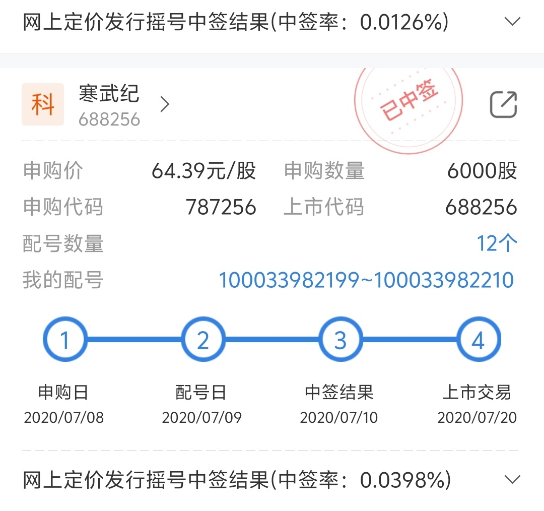 $沐曦股份(SH688802)$ 我中了,恭喜恭喜