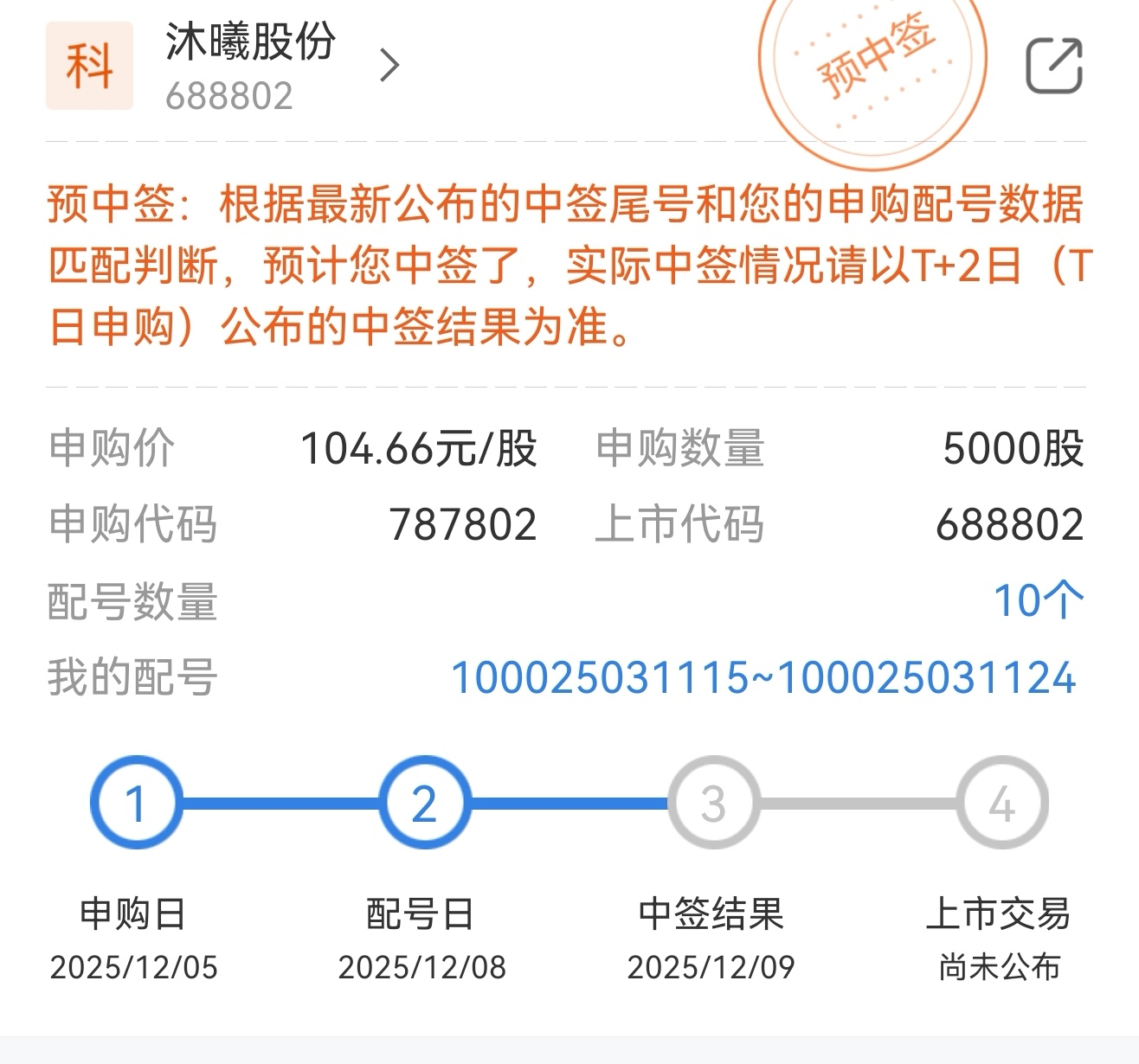 最近的运气确实比较好,新股申购是前几天想起来才点了一下
