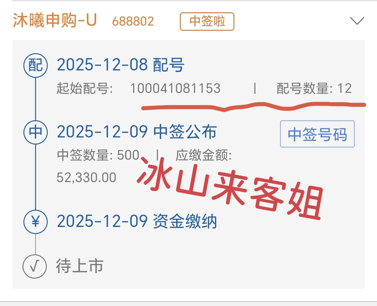 $沐曦股份(SH688802)$ 12个号,中了一签~感觉自己很牛B!