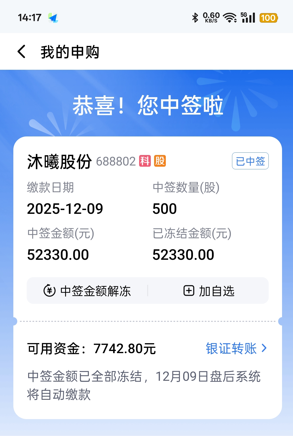$沐曦股份(SH688802)$ 不好意思,很久没有申购,但这次中了