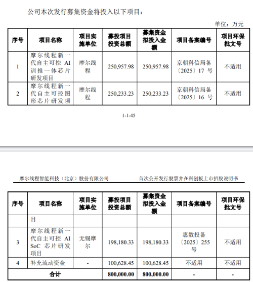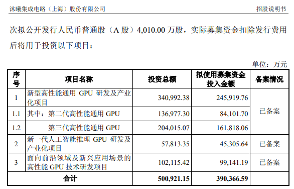 刚看了沐曦和摩尔的招股说明书,为啥沐曦投资总额50亿上市募集才39亿,摩尔是投资80亿上市募集80亿
