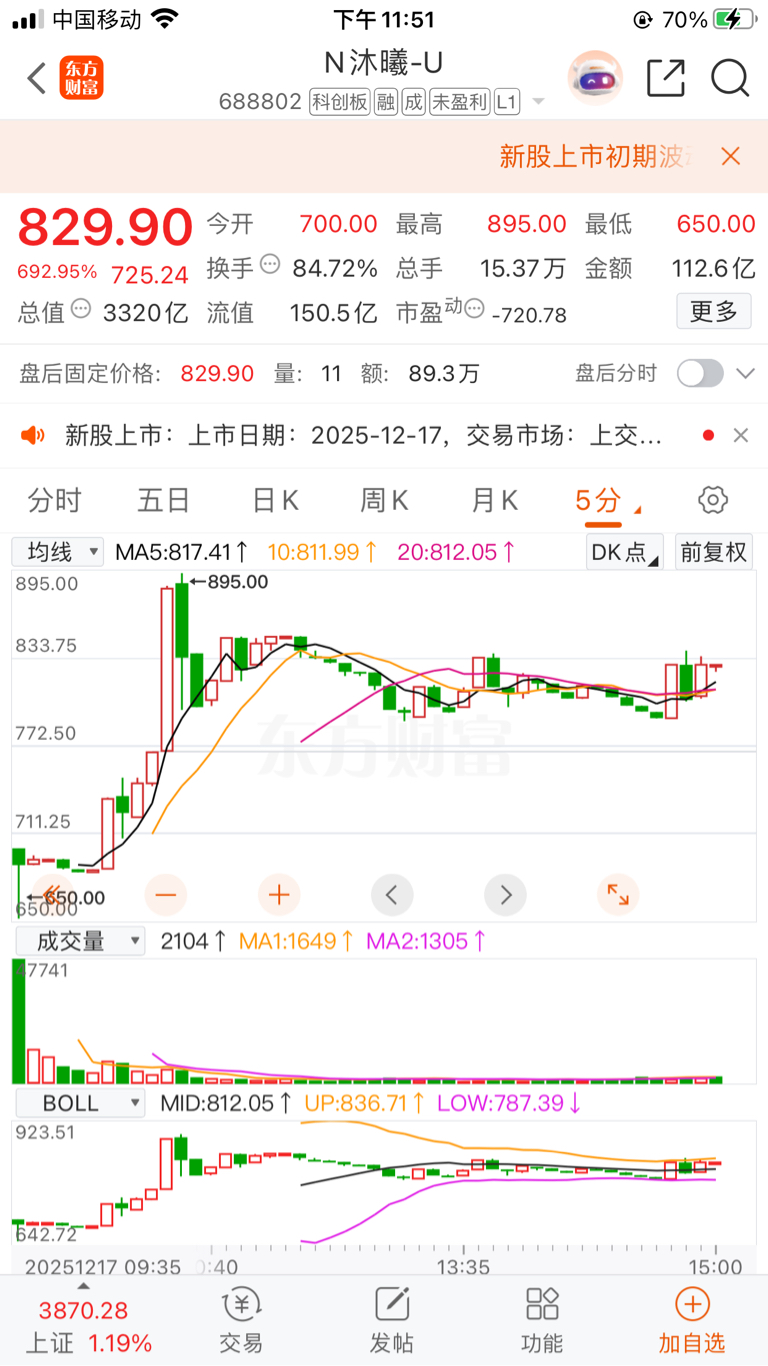 $N沐曦-U(SH688802)$ 换一个级别看走势很强,意犹未尽,感觉不会回调。主力可能直接拉升一波,可能不会去复制摩尔线程的走势。我这个图有谁懂可以在评论区留言打出来。
