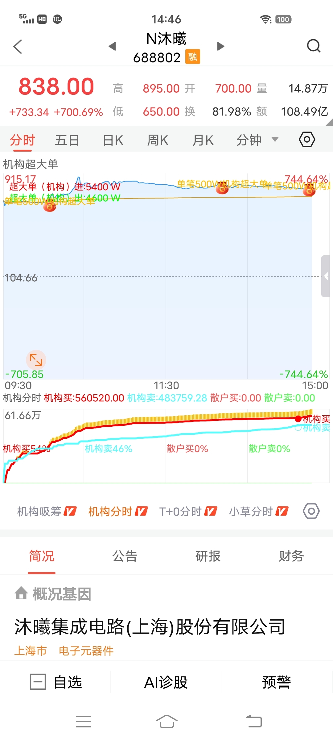 机构高位抢筹,尾盘还抢筹,这份看好的笃定和操作的坚决,会让今天的K线趋势线写下一行生动的大字:继续大涨——突破1000!