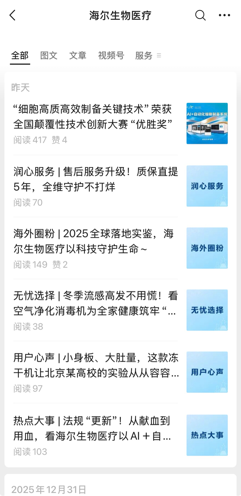 股友提醒,海尔生物旗下子公司也有微信公众号,也是国际化经营的基因,中国优秀公司以后就是全球化公司!