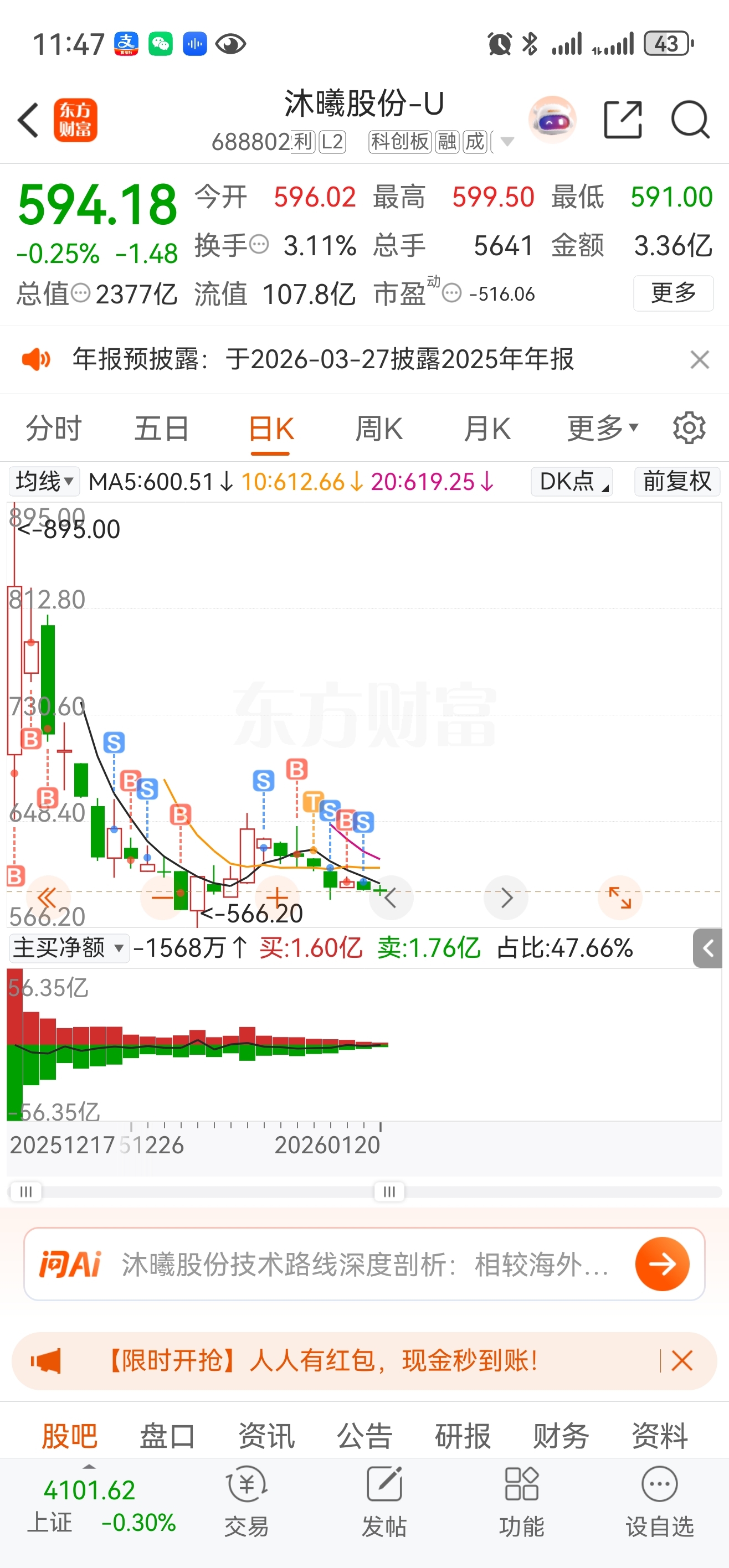 $沐曦股份-U(SH688802)$ #复盘记录# 在这上面亏了三十几万,然后在海光信息赚了二十几万,没想到这个股庄家这么坑,一直跌,但还是希望留下的散户朋友们发财。