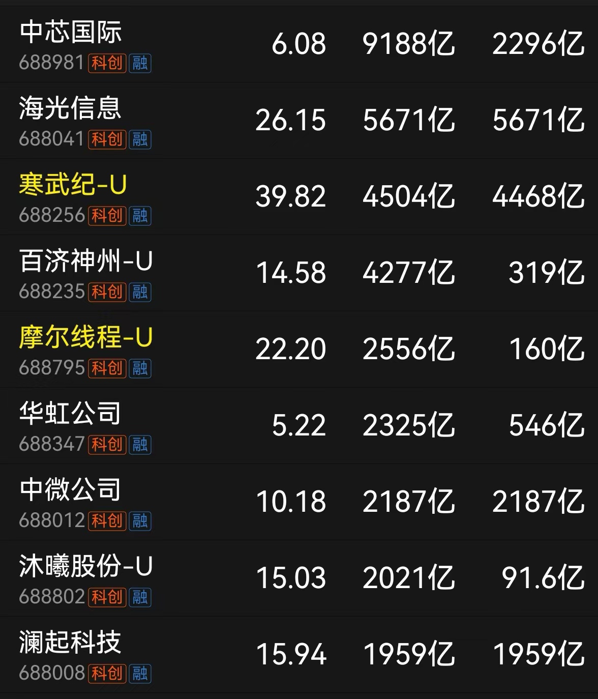 $沐曦股份-U(SH688802)$ 沐曦A股市值排第六了