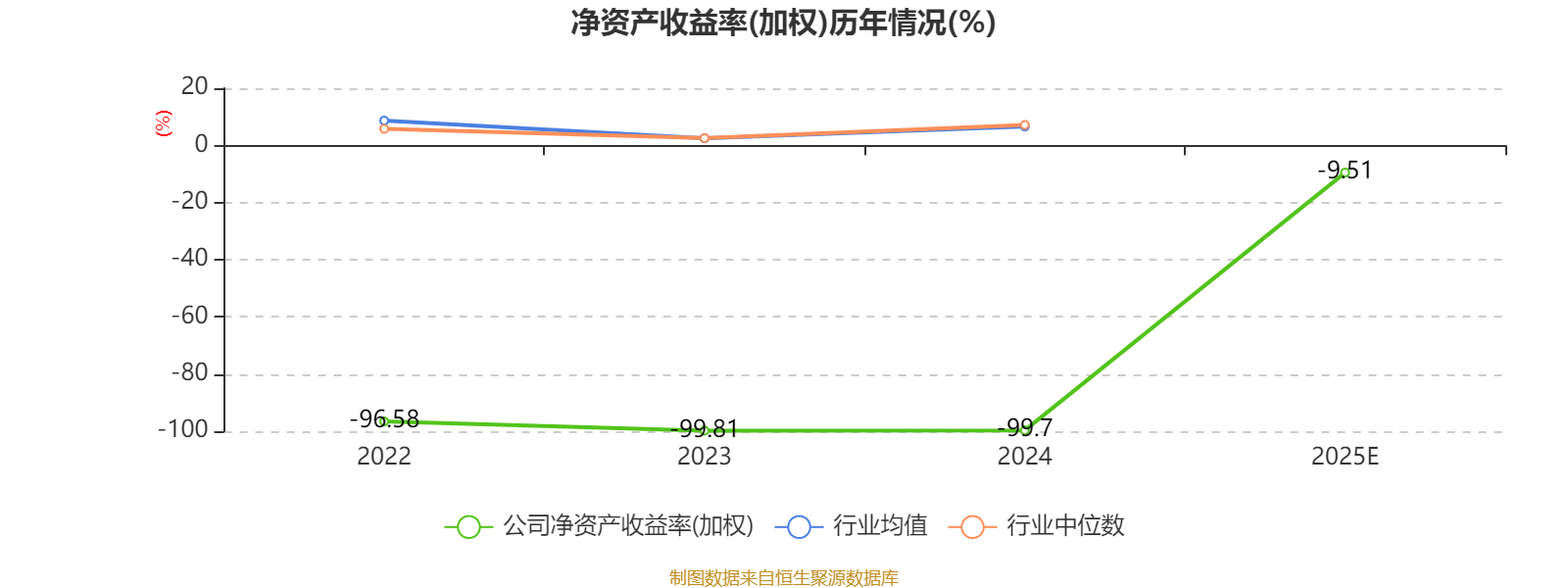 数据显示,2025年公司加权平均净资产收益率为-9.51%,较上年同期上升90.19个百分点。