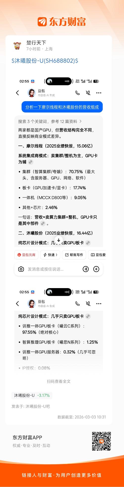 看了这个分析,就该知道究竟买摩尔线程还是沐曦股份——沐曦是做纯GPU卡的!