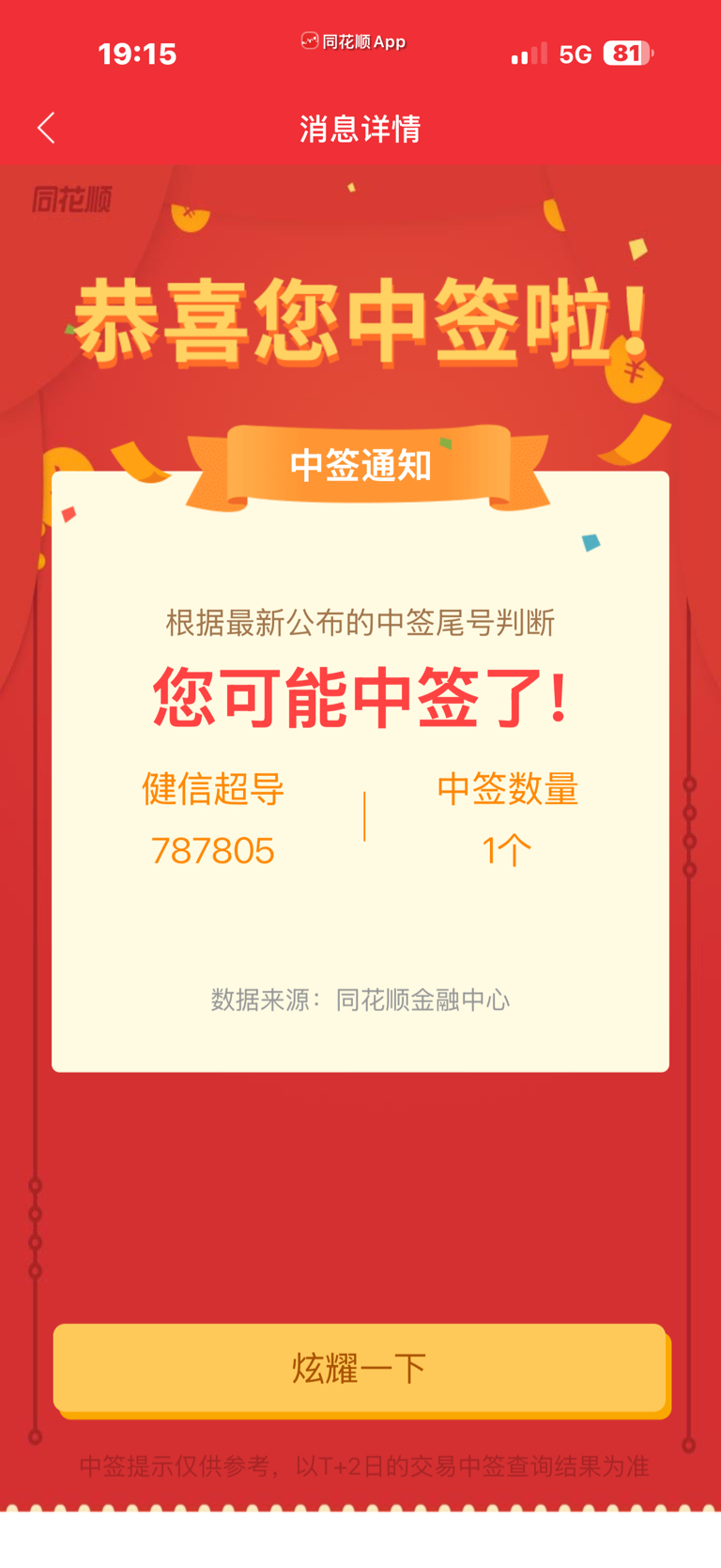 $健信超导(SH688805)$ 这是中了吗?没有收到短信呢?