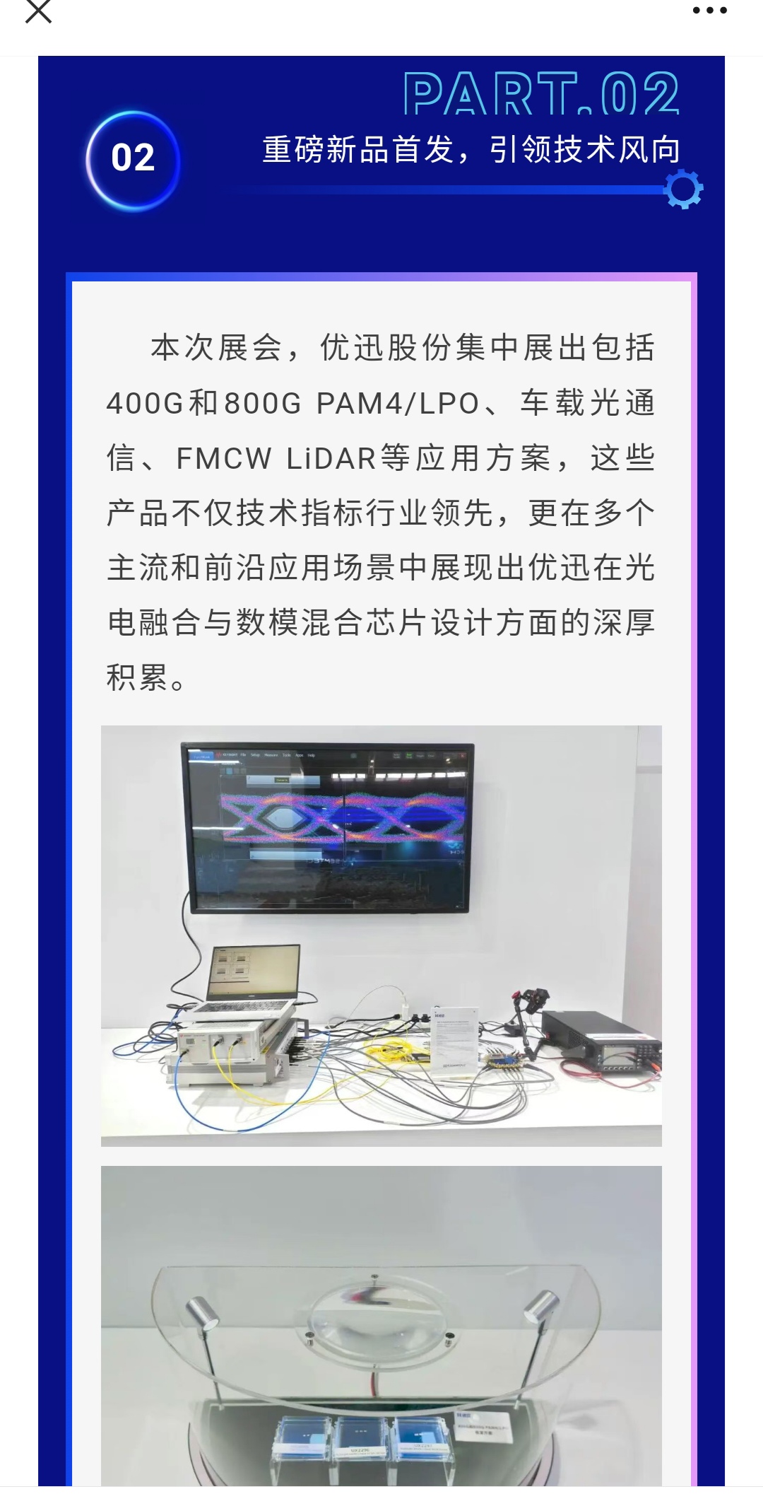 本次展会,优迅股份集中展出包括400G和800GPAM4/LPO