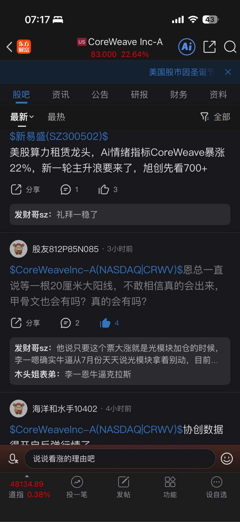 温馨提示: 1.根据《证券法》规定,禁止编造、传播虚假信息或者误导性信息,扰乱证券市场;2.用户在本社区发表的所有资料、言论等仅代表个人观点,与本网站立场无关,不对您构成任何投资建议。用户应基于自己的独立判断,自行决定证券投资并承担相应风险。《东方财富社区管理规定》