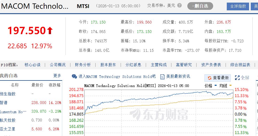 你的美股竞争对手MACOM昨晚大涨13%,能涨点了不