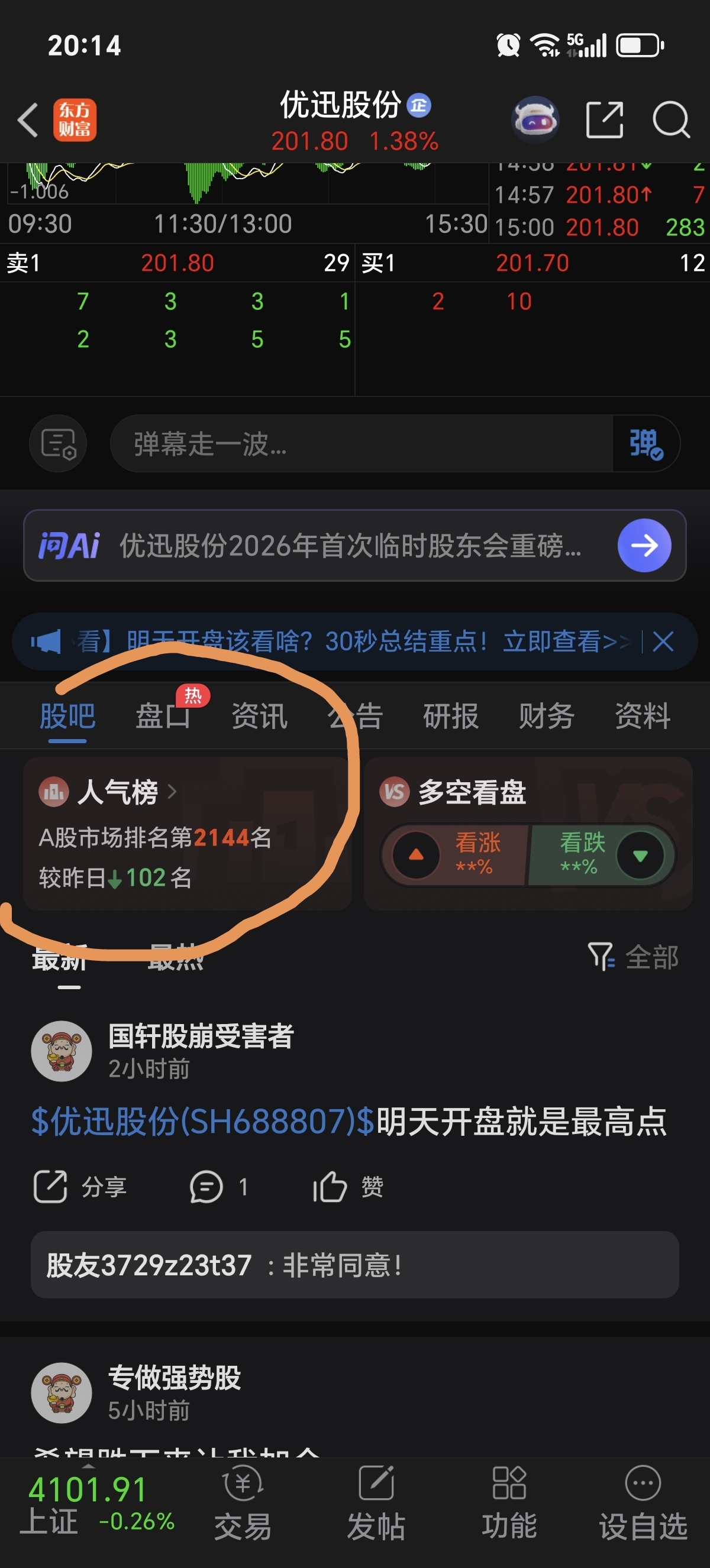 优讯股份人气还是不足,明天如果能大力拉升以提高人气,那周五的长上影线就是仙人指路