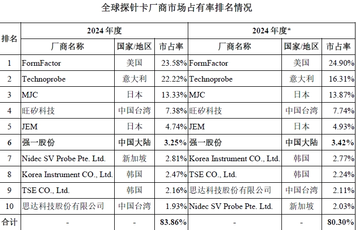 全球前十中唯一国内企业,国产替代空间巨大。探针卡行业第一股——强一股份