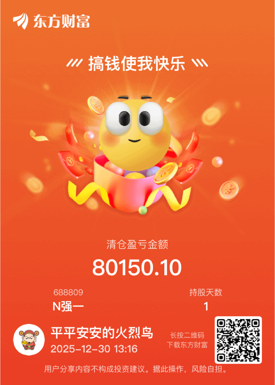 $N强一(SH688809)$ 也就这样了。赚八万 超出预期五万了。祝大家新年发大财
