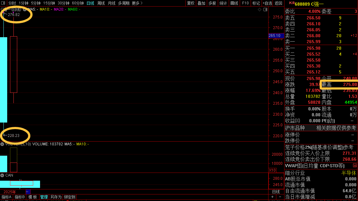 $C强一(SH688809)$ 276.82估计能破,今天最高275,拭目以待
