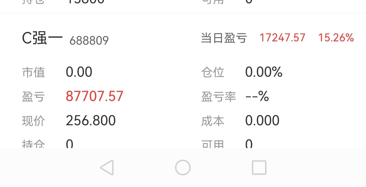 $C强一(SH688809)$ 今日500股全部抛售,中签快乐