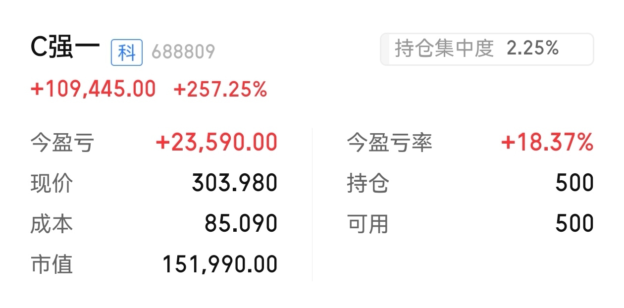 $C强一(SH688809)$ 哇塞!强一终于突破三百啦!!!庆幸一直拿着没出!!!哈哈哈