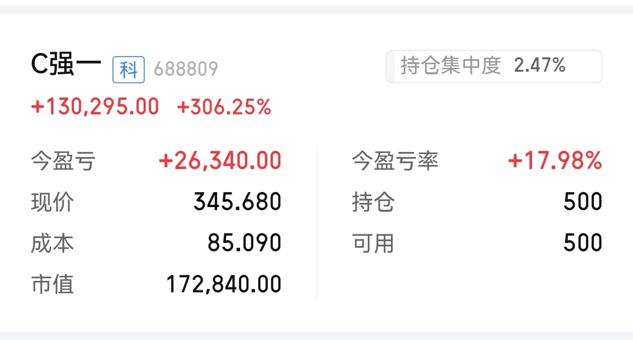 $C强一(SH688809)$ 还好一直坚持到现在,中签没出哈哈