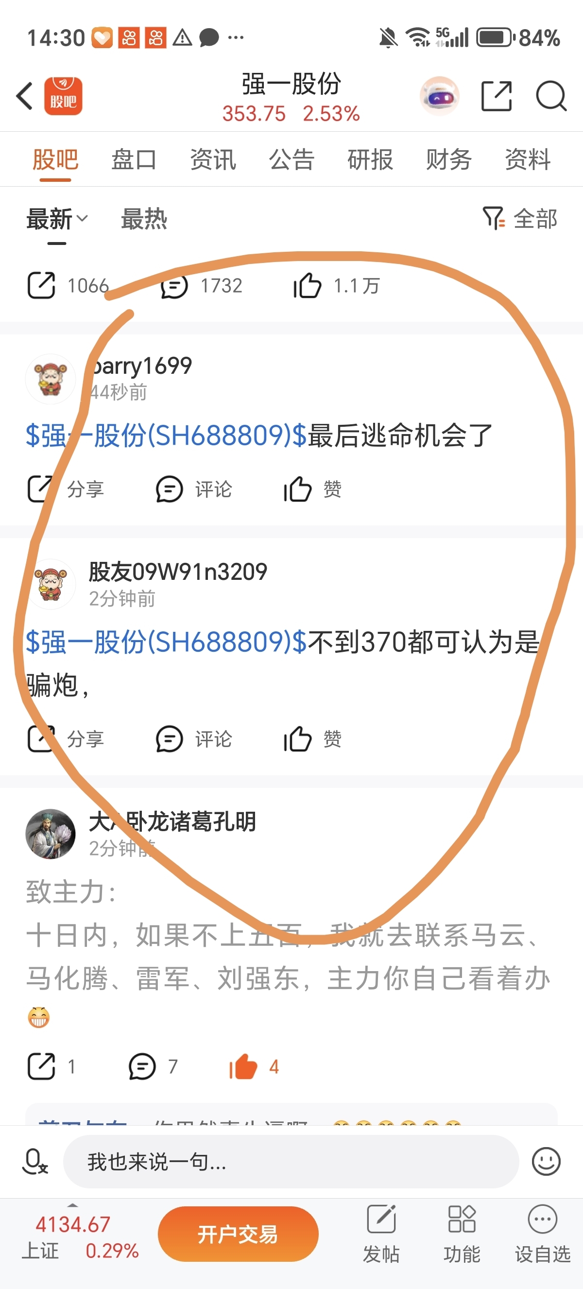 致主力:十日内,如果不上五百,我就去联系马云、马化腾、雷军、刘强东,主力你自己看着办