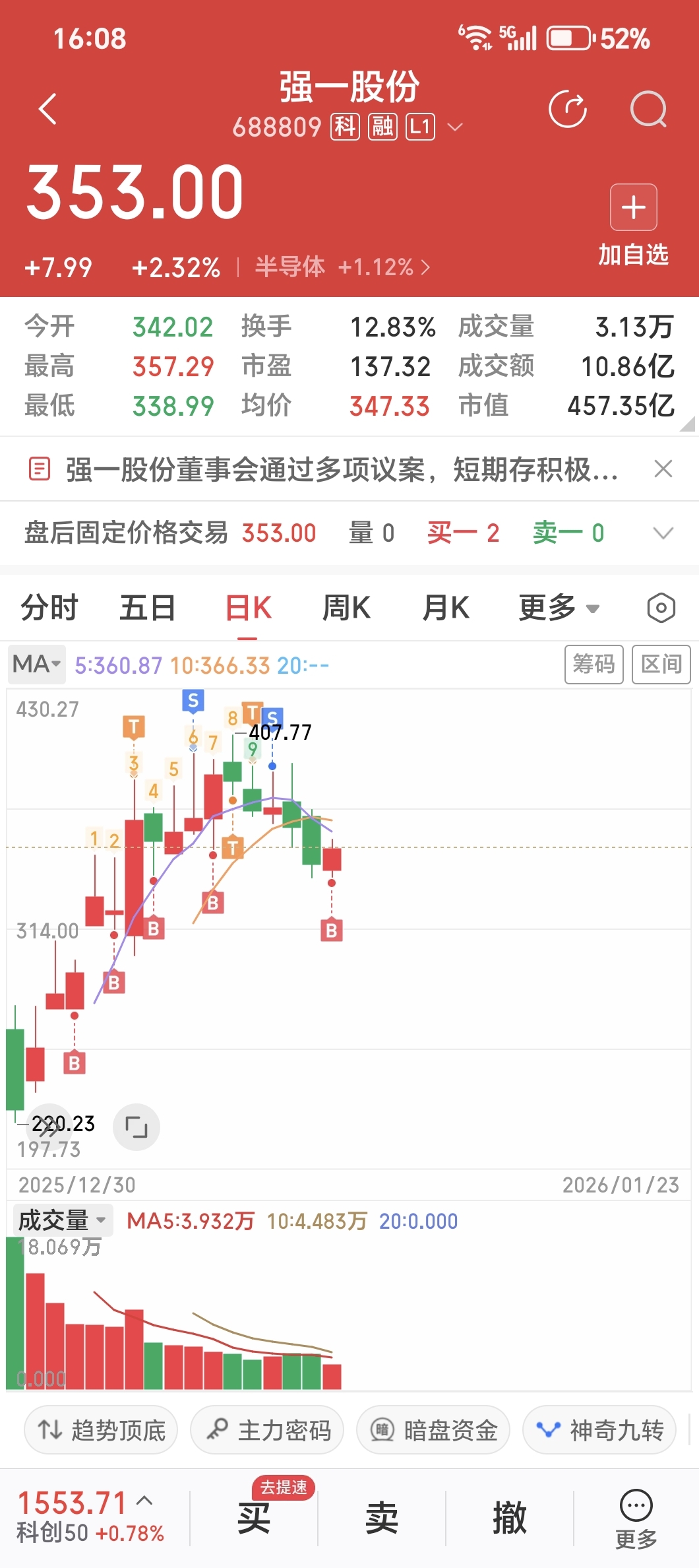 $强一股份(SH688809)$ 今天又回来了,三成仓位返场,小赚