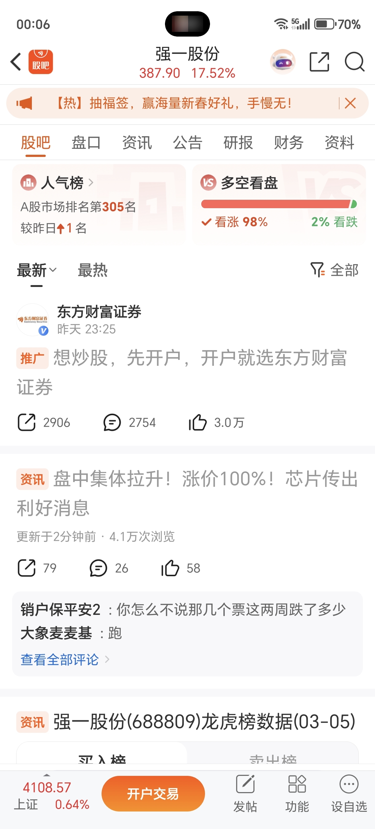 温馨提示: 1.根据《证券法》规定,禁止编造、传播虚假信息或者误导性信息,扰乱证券市场;2.用户在本社区发表的所有资料、言论等仅代表个人观点,与本网站立场无关,不对您构成任何投资建议。用户应基于自己的独立判断,自行决定证券投资并承担相应风险。《东方财富社区管理规定》