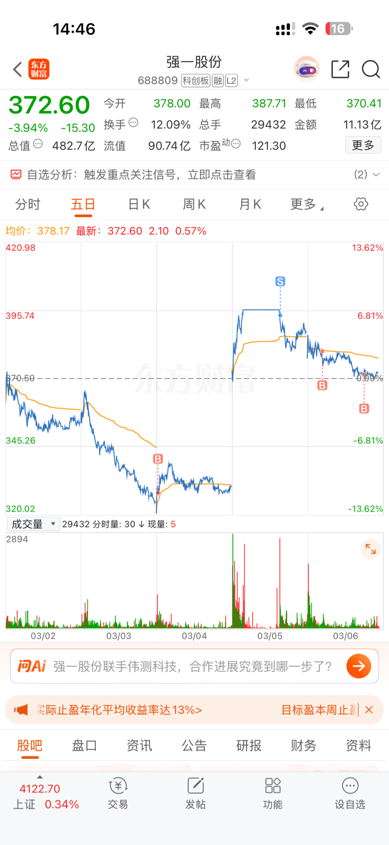 $强一股份(SH688809)$ 唉,应该过个几天再进的