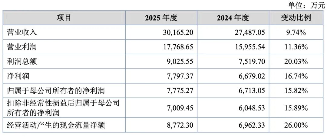 爱得科技招股书称,2025年度,公司营业收入为3.02亿元,较上年同期增长9.74%;归属于母公司所有者的净利润为7775.27万元,较上年同期增15.82%。