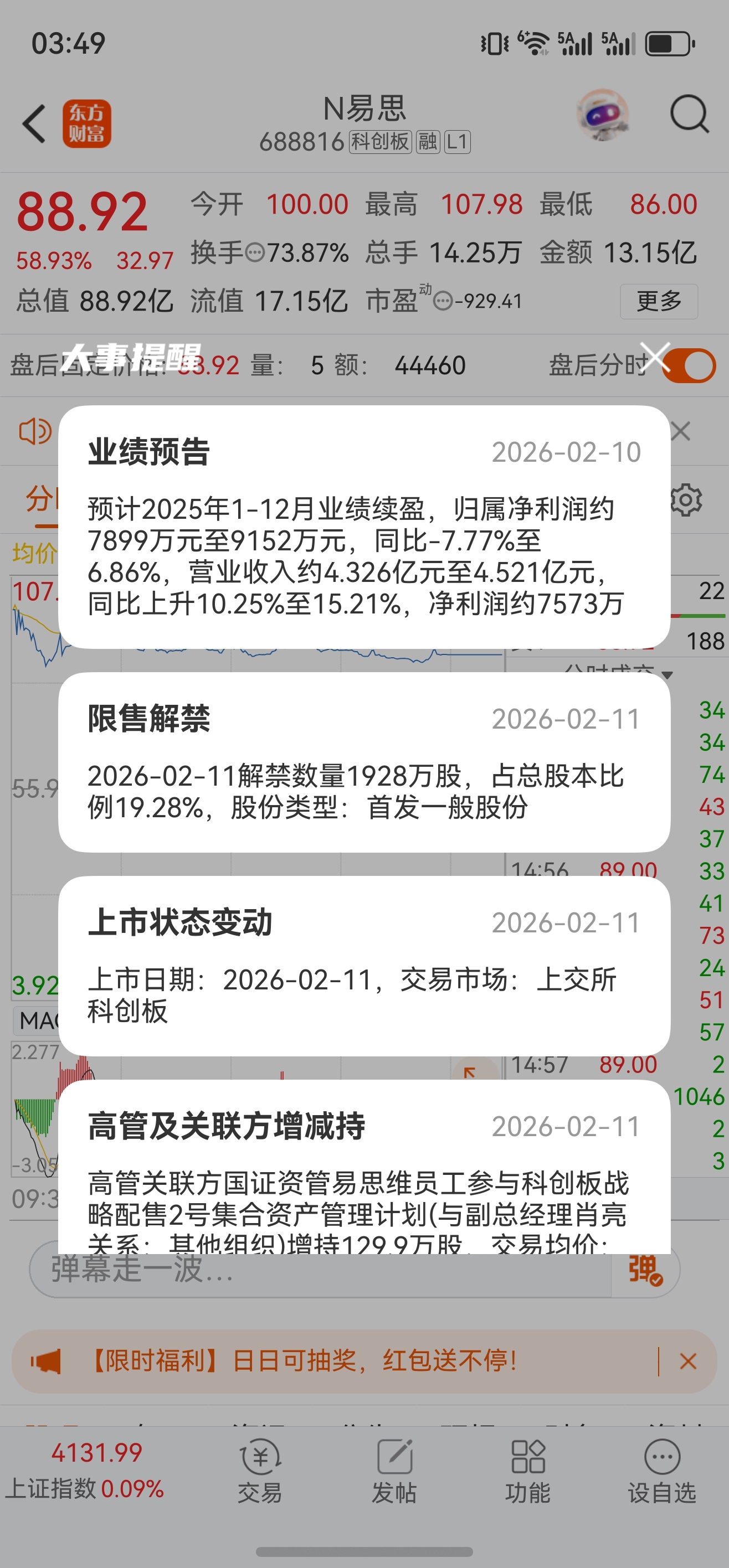 四季度业绩牛!看清楚,不是亏损股!兄弟们明天冲起来!年前唯二没有涨跌限制的票票!