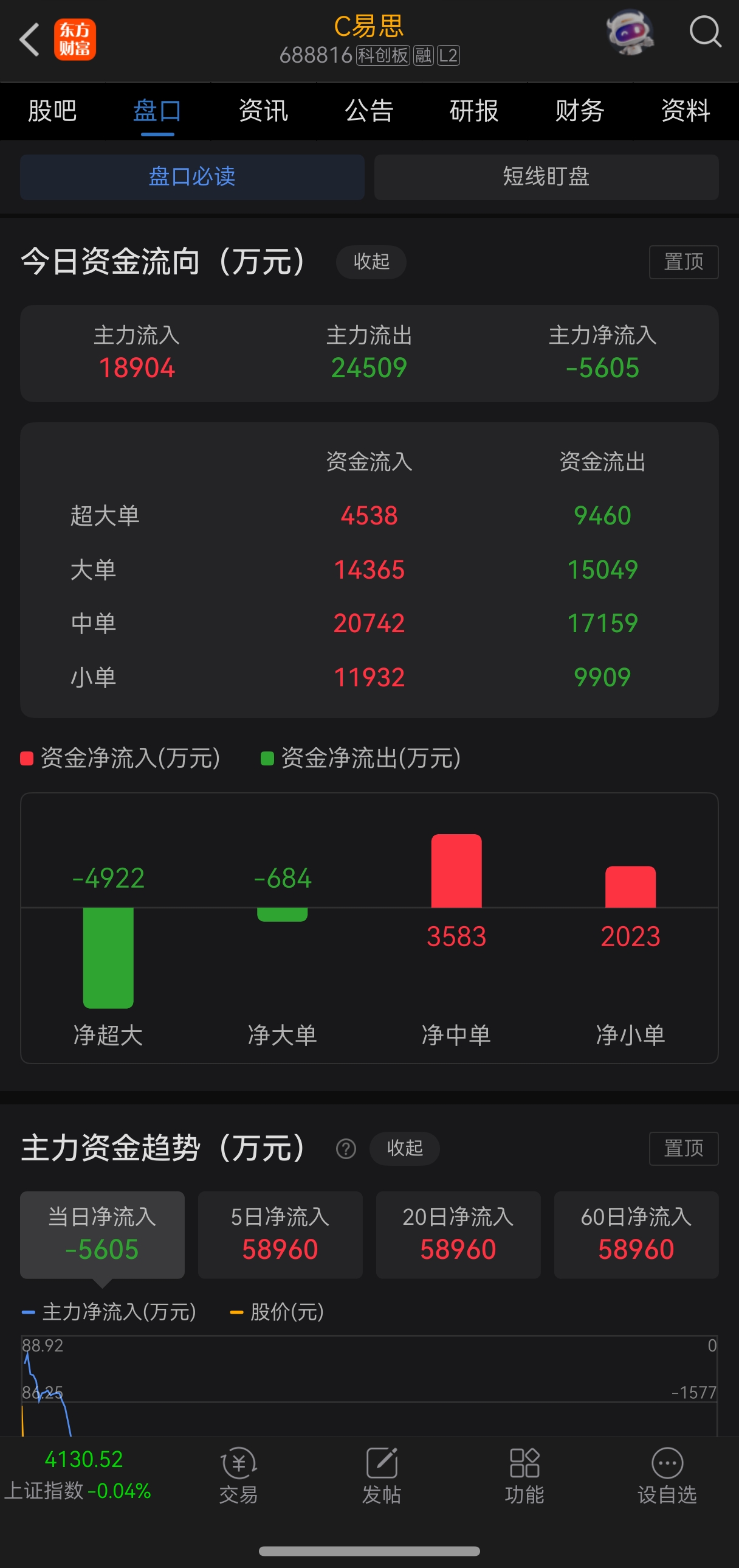 $C易思(SH688816)$ 昨天主力全天买入6个多小目标,今天半小时砸出了0.3个多小目标,按这个量全天得出2个多小目标,但为什么要高价买了低价出呢?