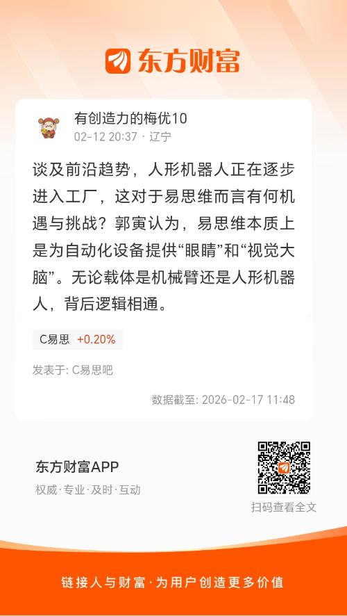谈及前沿趋势,人形机器人正在逐步进入工厂,这对于易思维而言有何机遇与挑战?郭寅认为,易思维本质上是为自动化设备提供“眼睛”和“视觉大脑”。无论载体是机械臂还是人形机器人,背后逻辑相通。