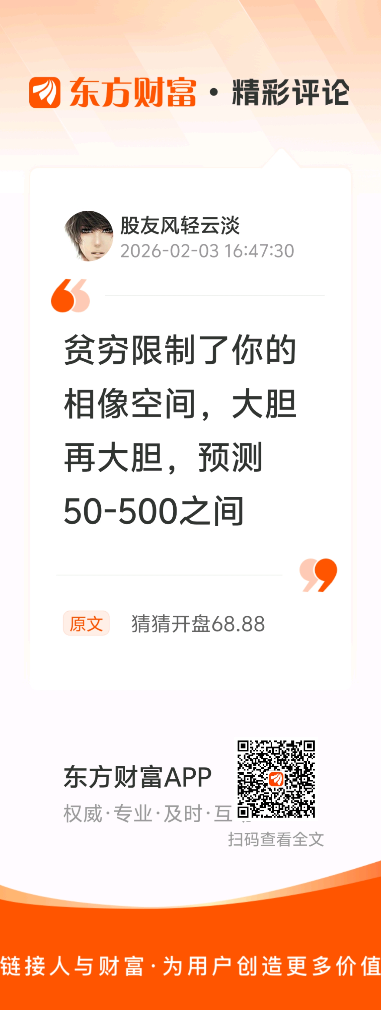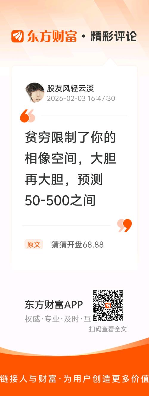 //@股友风轻云淡 :贫穷限制了你的相像空间,大胆再大胆,预测50-500之间