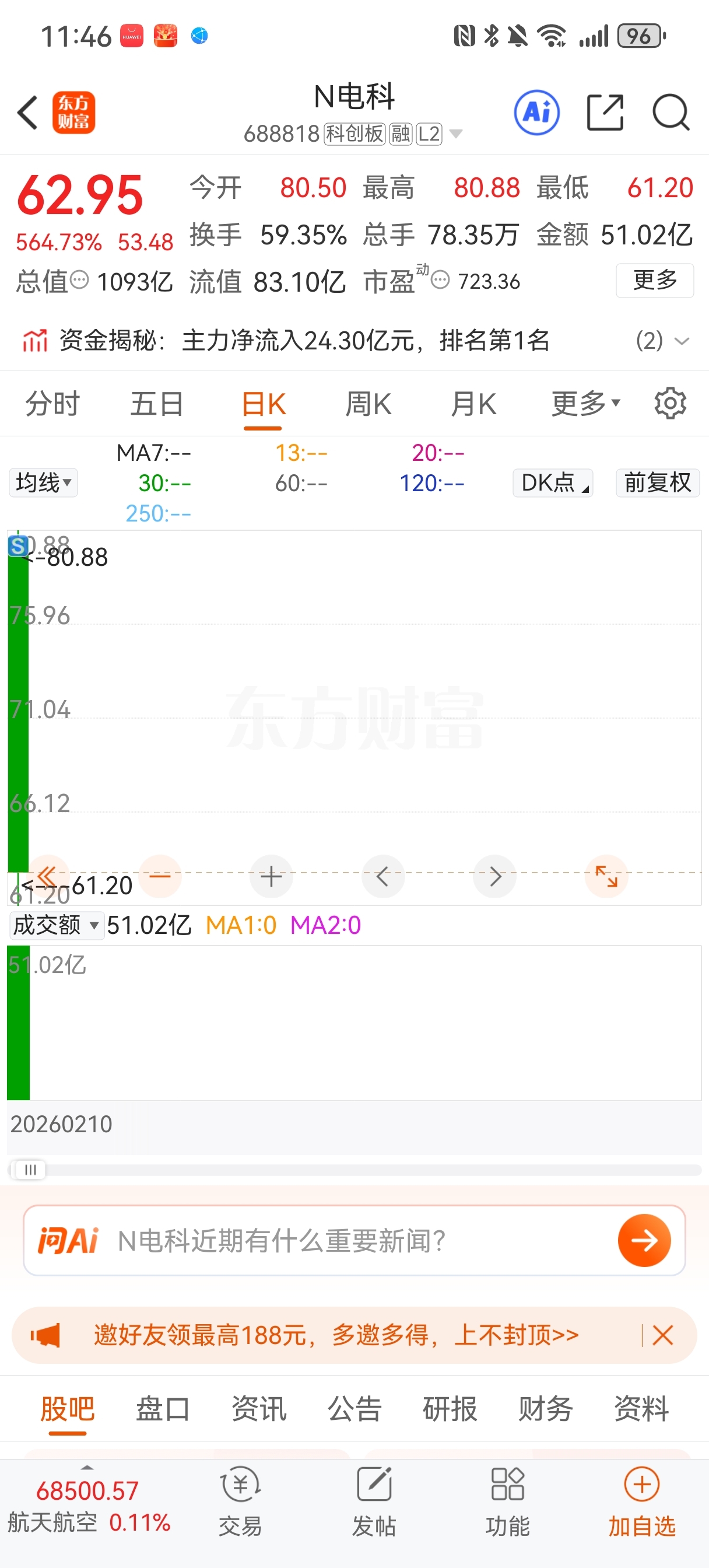 $N电科(SH688818)$ 就500股,80卖的,送给大家作为新年礼物